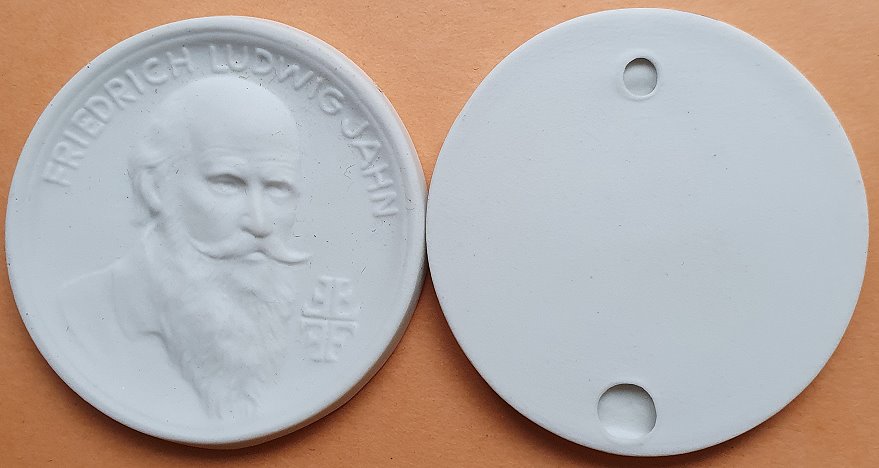 Eine unfertige Plakette aus Porzellan vom
