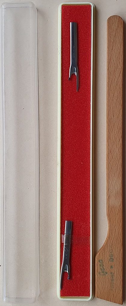 mit einem Holzgriff. Der Trenner ist 21 cm lang