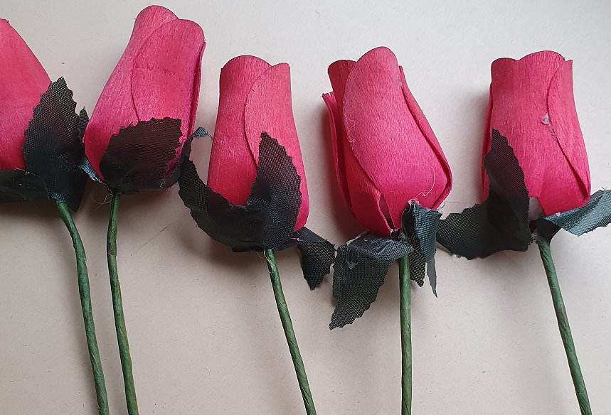 4 alte Holzrosen handgearbeitet aus dem Erzgebirge. Die Stengel sind
