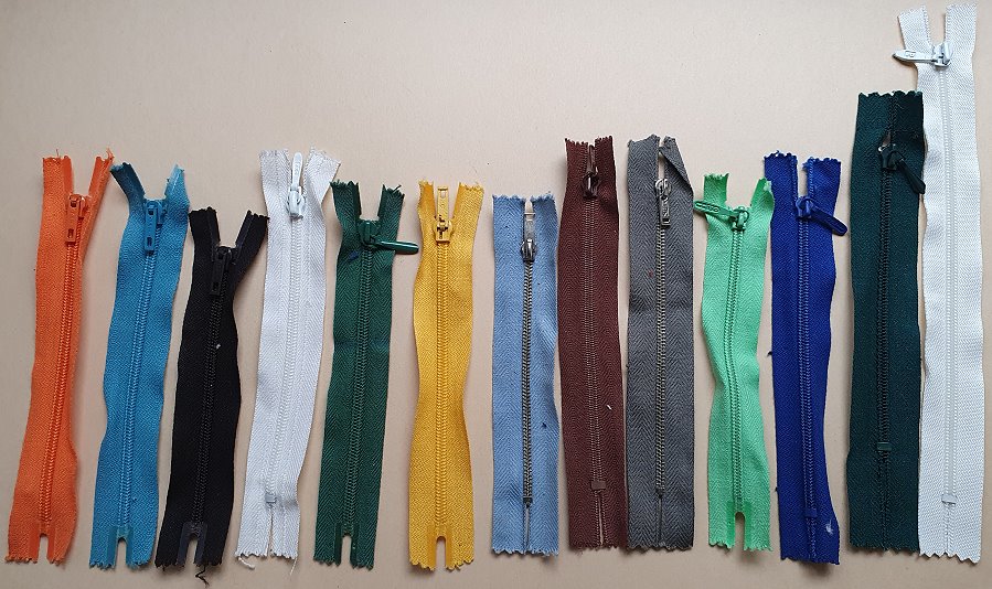7 Reissverschlüsse mittelgrün, weiss, gelb,